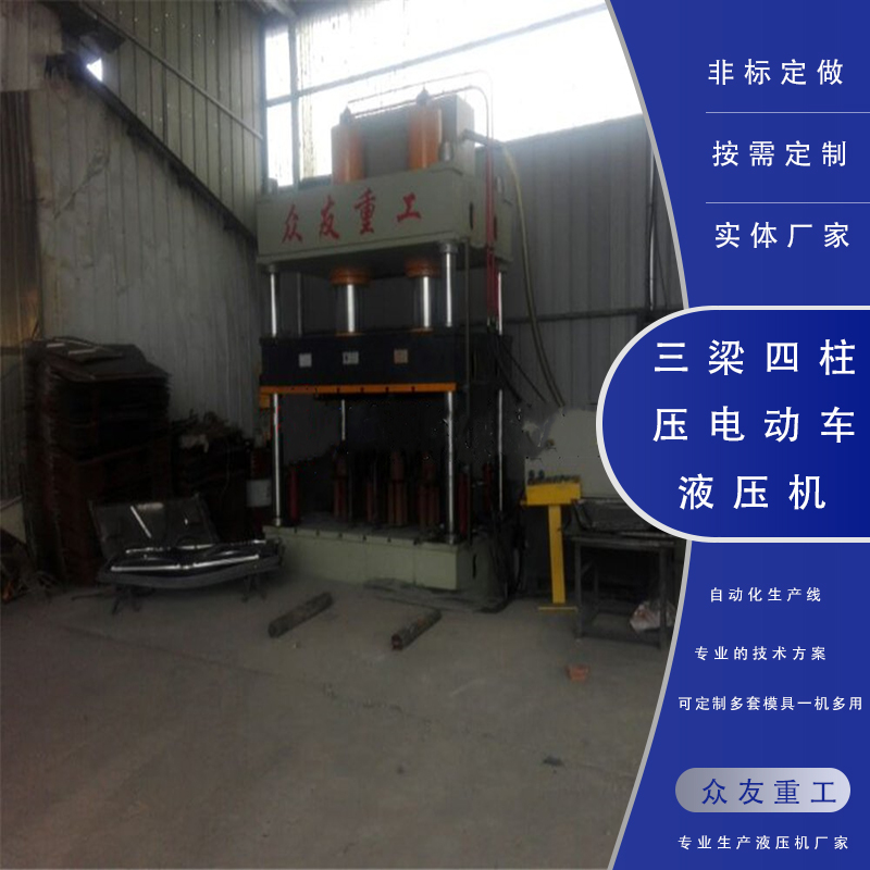 三梁四柱油壓機(jī)壓電動(dòng)車油壓機(jī)油壓機(jī)機(jī)身采用三梁四柱式結(jié)構(gòu),上梁、中間滑梁、工作臺(tái)通過立柱和緊固螺母、調(diào)整螺母結(jié)合成一個(gè)固定機(jī)架,機(jī)架精度靠調(diào)節(jié)螺母調(diào)整,具有良好的