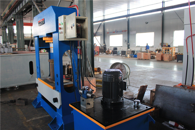 100噸框架式油壓機(jī)又稱為100T龍門油壓機(jī),機(jī)器采用龍門架全鋼性結(jié)構(gòu),經(jīng)振動(dòng)時(shí)效處理使機(jī)械變形量小,機(jī)架設(shè)計(jì)經(jīng)由有限元設(shè)計(jì),具有高剛性、高精度。龍門式油壓機(jī)工作臺(tái)能上下移動(dòng),大大擴(kuò)展了機(jī)器開合高度,使用更方便。100噸框架式油壓機(jī)由主缸、液壓動(dòng)力系統(tǒng)及電器系統(tǒng)等部件組成。工作臺(tái)采用優(yōu)質(zhì)鋼板焊接而成,確??煽啃院湍陀眯?,廣泛應(yīng)用于機(jī)械行業(yè)的拆卸、成形、矯正、校直、壓裝和板料成形,可作為現(xiàn)代汽車修理行業(yè)必備的壓力設(shè)備