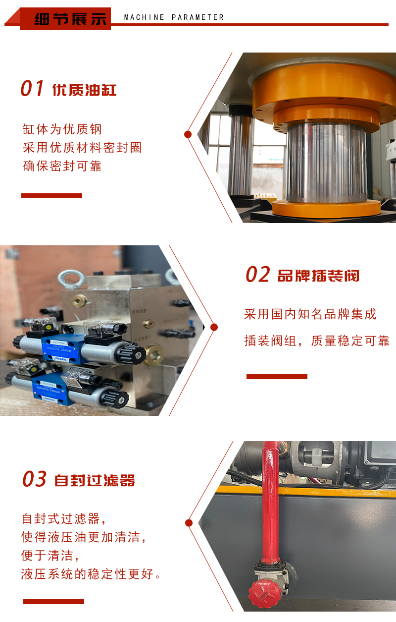 3、油缸采用整體鍛打并經(jīng)精密研磨,新型油缸密封元件,在高壓狀態(tài)下使用可靠性強,壽命長。