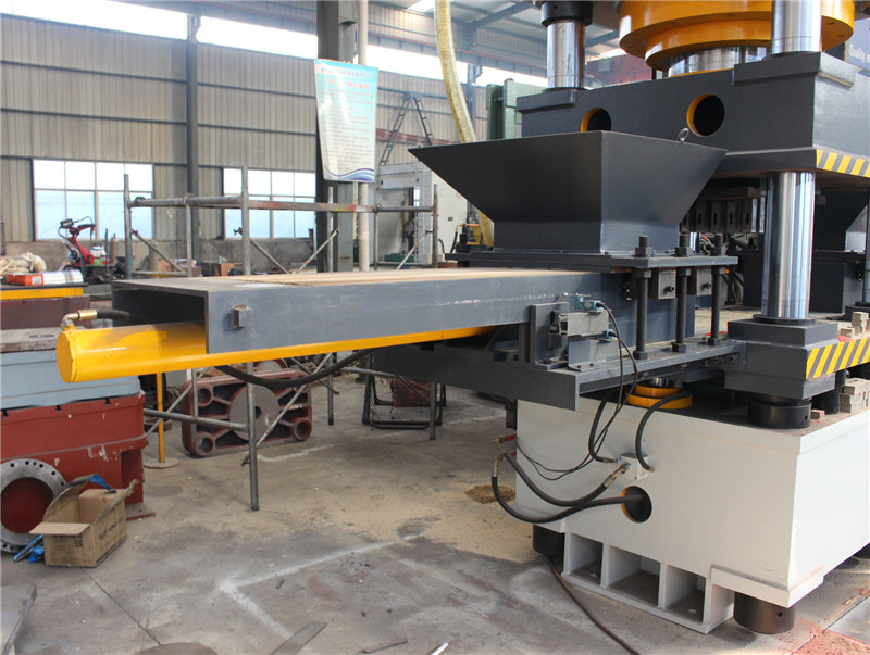 雙色魚餌壓塊630噸油壓機由主機、液壓泵站和電腦控制柜組成,與其他設備相比,不同點在于:它有兩個布料系統(tǒng),每個布料箱內(nèi)都放置不同的魚餌料。??蜃竺媸且粋€布料箱,右面是另外一個布料箱,后面是推塊系統(tǒng),前面用于放置推出的魚餌塊,在模具體下部有兩個油缸,用于控制模具體的上下移動。其具體工作過程為:模具體下部油缸向上移動,移動距離需要根據(jù)原材料的壓縮比計算,一個布料箱開始工作,將物料布滿模具框內(nèi),然后后退,主油缸下行輕微壓制下與餌料,然后上行,第二個布料箱開始工作,將另外一種料布滿在料箱內(nèi),然后后退,主油缸快速下行加壓成型,保壓幾秒鐘,模具體下部油缸下行,從而實現(xiàn)魚餌塊脫模,推塊系統(tǒng)工作,將魚餌塊推出,這樣一個過程就完成了,依次循環(huán),實現(xiàn)連續(xù)生產(chǎn)
