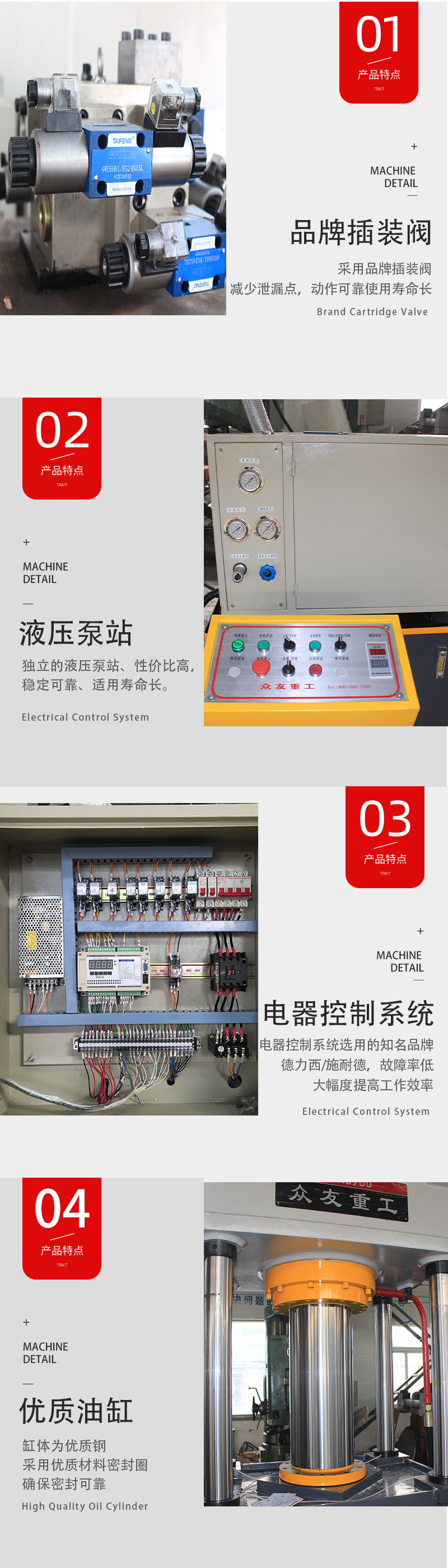 6.主要液壓密封件選用知名品牌,對(duì)于設(shè)備密封性能提供可靠保證