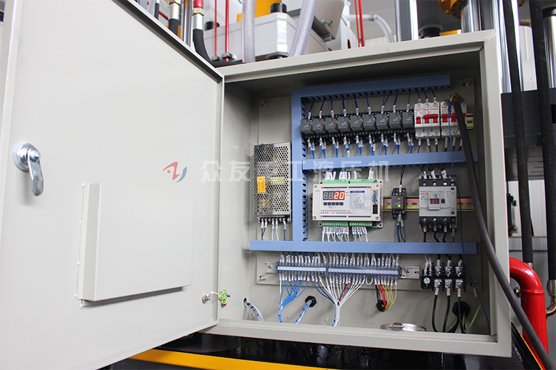 機(jī)器設(shè)有獨(dú)立的電氣控制箱,集中控制整個(gè)機(jī)器的運(yùn)轉(zhuǎn)。設(shè)備配有光電保護(hù)裝置和急停按鈕,確保作業(yè)時(shí)人員和設(shè)備的安全