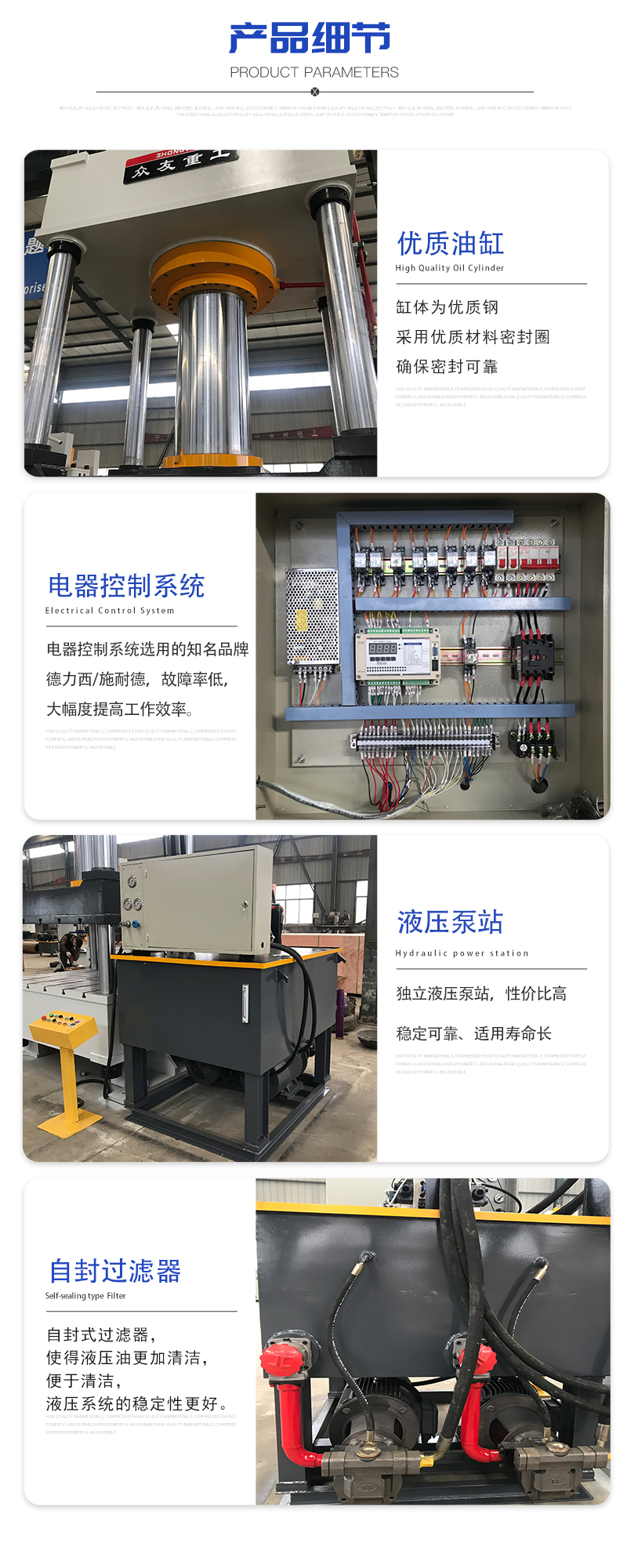 6.主要液壓密封件選用知名品牌,對(duì)于設(shè)備密封性能提供可靠保證